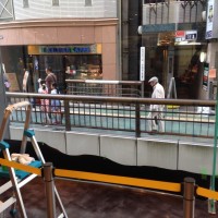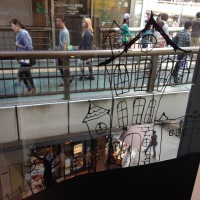 ショーウィンドウなので、描いてるガラス越しに誰かが見てるのが分かります。